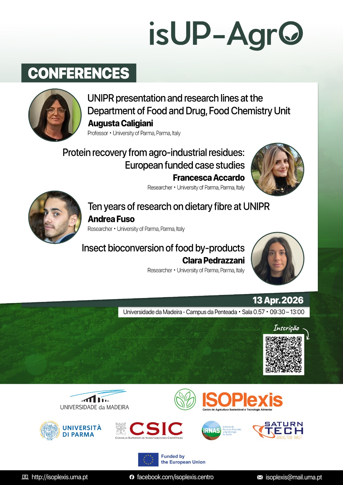 No dia 13 de abril de 2026, a Universidade da Madeira (UMa) acolheu um ciclo de conferências subordinado ao tema “Add value to agriculture and food chain by-products”, integrado na quarta ação de