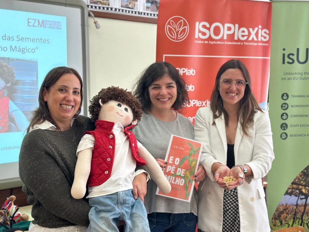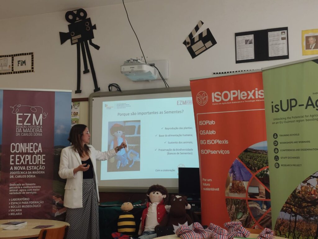 Senior Technician Dr. Cláudia da Costa, from the Regional Directorate of Veterinary and Animal Welfare, has been leading these activities in coordination with the ISOPlexis Center, while also promoting the dissemination of the work developed by this research center in the field of agrobiodiversity and plant genetic resource conservation. The sessions, under the theme “The Importance and Valorization of Seeds,” aimed to stimulate students’ curiosity, enthusiasm, and scientific thinking.