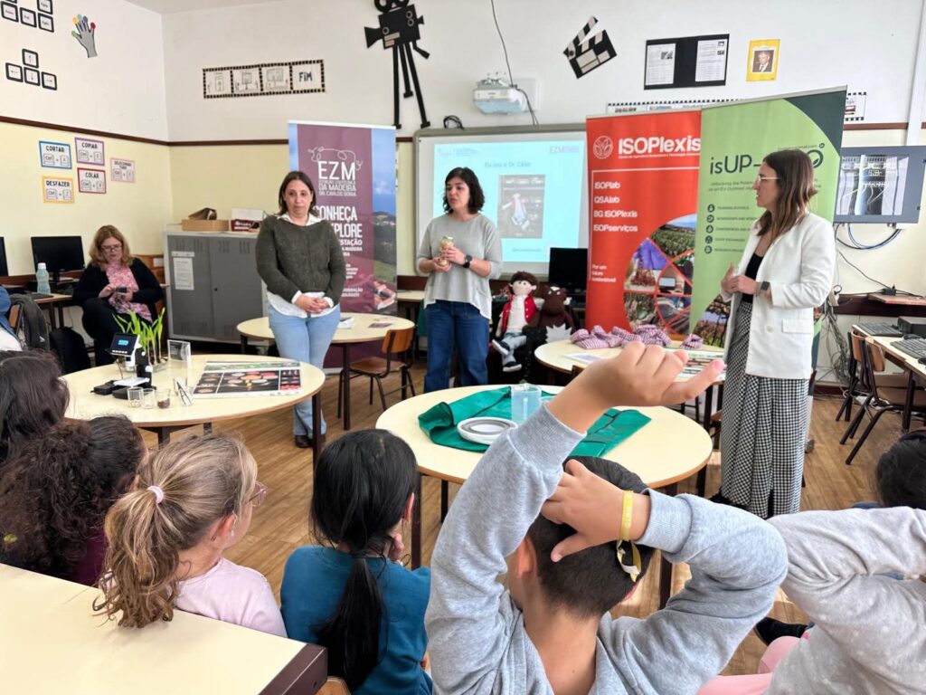 On March 25, the initiative took place at the Covão e Vargem Primary and Preschool, involving classes A and B of the 2nd grade. The activity also included the participation of Carla Gouveia, guest researcher at the ISOPlexis Center, and Sónia Ferraz Alves, Senior Technician at the ISOPlexis Center.
