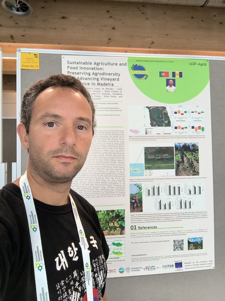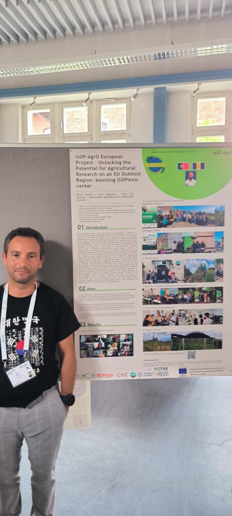 Dr. Nuno Miguel Velosa Nunes, representing the ISOPlexis Center and CITAB, presented two panel communications entitled “isUP-AgrO European Project - Unlocking the Potential for Agricultural Research on an EU Outmost Region: boosting ISOPlexis center” and “Sustainable Agriculture and Food Innovation: Preserving Agrodiversity and Advancing Vineyard Resilience in Madeira”.