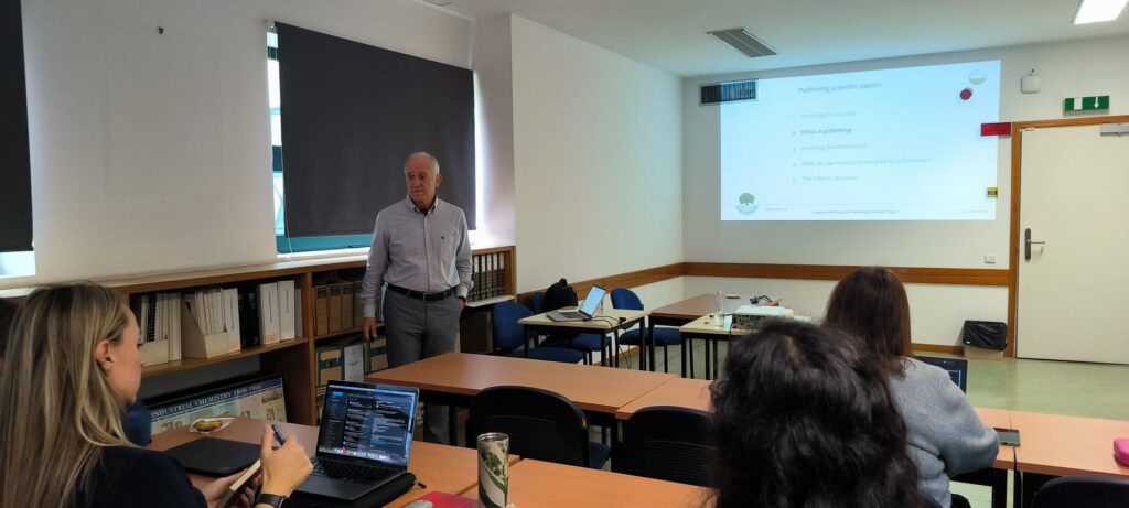 O primeiro dia da formação foi dedicado à redação científica, abordando temas como a conceção de um artigo científico, a sua estrutura e a organização eficaz de tabelas e figuras. No segundo dia, os participantes aprofundaram conhecimentos sobre publicação académica, incluindo ética na autoria, interação com editores e revisores, bem como a análise de exemplos de publicações científicas de elevado impacto.