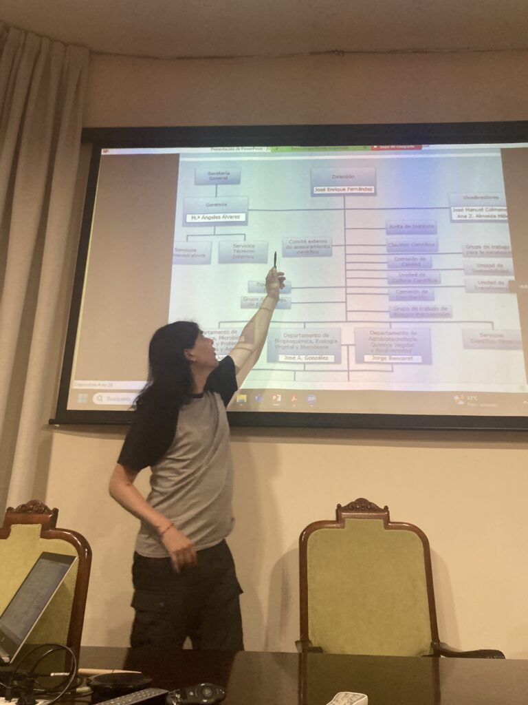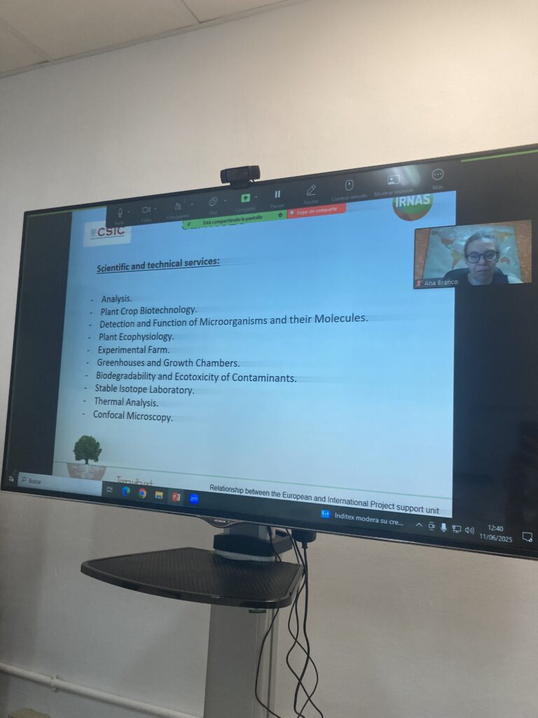 A visita prosseguiu no IRNAS-CSIC, em Sevilha, onde a equipa interagiu diretamente com as unidades de gestão de projetos e apoio à investigação, aprofundando a sua compreensão das operações diárias, das ferramentas de coordenação e dos fluxos de trabalho institucionais.